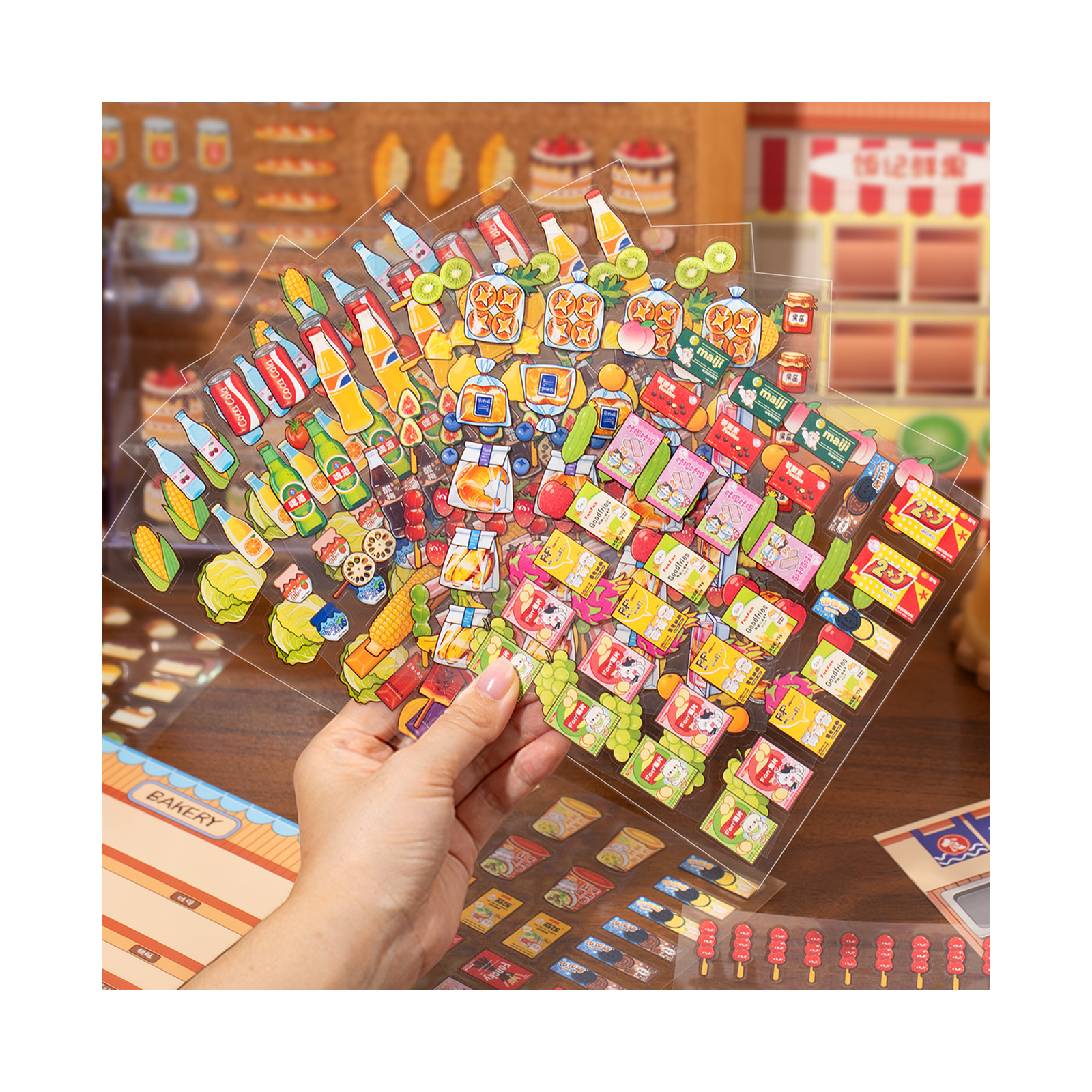 Thème de stockage alimentaire | Livre de scène Série 4.0 | Livre d'autocollants, Scène d'autocollants, Autocollants de scène miniature 3D, Autocollants DIY anti-stress, Autocollants de mise en scène