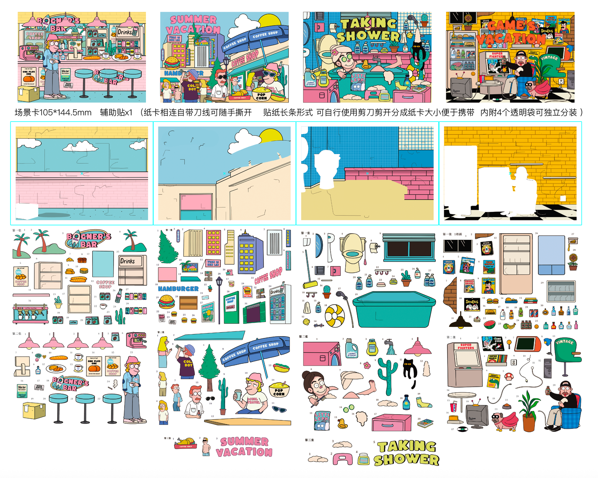 Amerykański styl komiksowy | Duży rozmiar | Magiczna Scena 11.0 Seria | Naklejki Sceniczne, 3D Miniaturowe Naklejki Sceniczne, Naklejki DIY ulatniające stres, Naklejki Ustawiające Scenę
