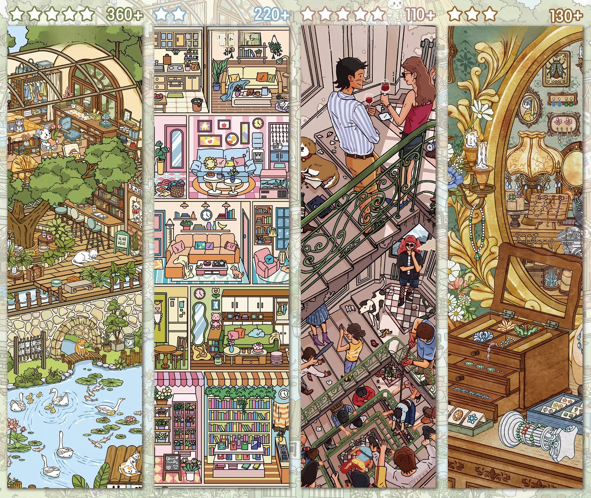 Pięknie ilustrowane tło, które stworzy scenę dla Twojej historii. Cztery unikalne sceny do stworzenia.