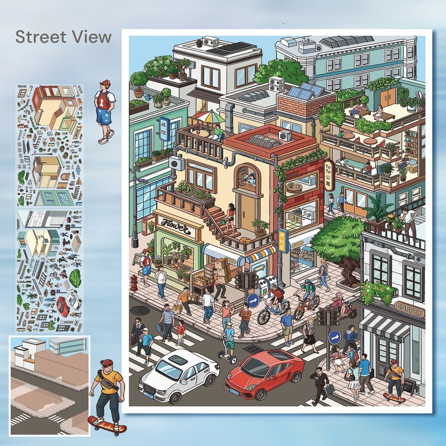 Foi um prazer montar esta cena de adesivos. Foi fácil de montar graças às orientações dos adesivos. O estilo artístico é muito bonito. Fiquei interessado porque azul é minha cor favorita. Uma cena muito relaxante. Montei tudo em uma única sessão.